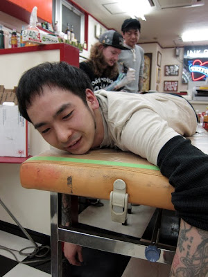 She’s not a fan of tattoos, my wife. And yet she knows tattoo is a primal means of self-expression for me. This conflict of interests—wanting to offer me her unconditional support, not wanting her wife to look like a circus freak—it hangs in the air. Until we burst out laughing.